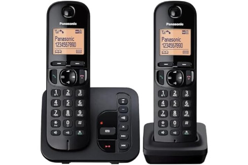 Panasonic KX-TGC222EB DECT Cordless Phone with Answering Machine, 1.6 inch Easy-to-Read Backlit Display, Nuisance Call Blocker, Hands-Free Speakerphone, ECO Mode - Black, Twin Handset Pack