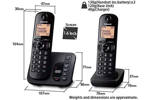 Panasonic KX-TGC222EB DECT Cordless Phone with Answering Machine, 1.6 inch Easy-to-Read Backlit Display, Nuisance Call Blocker, Hands-Free Speakerphone, ECO Mode, Twin Handset Pack, Black