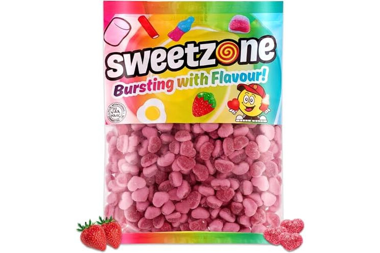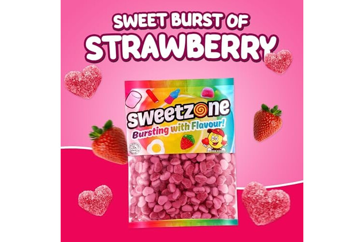 Sweetzone Fizzy Strawberries Heart Sweets - 1kg Bag of Strawberry Sweets, Chewy Sweets - Mouthwatering Gummy Sweets Fruit Chews - Halal Sweets Irresistible to All Sweets Lover