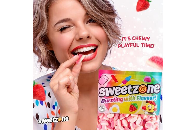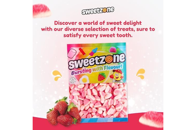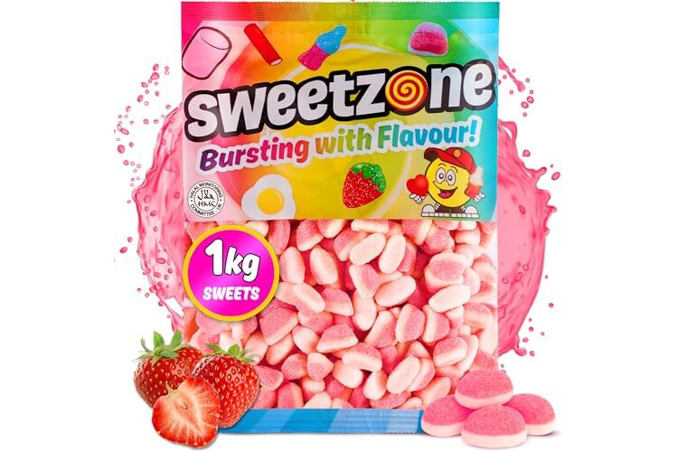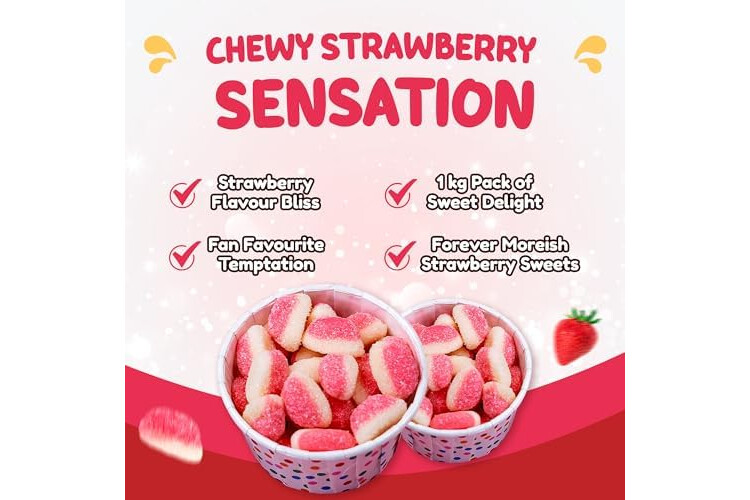 Sweetzone Strawberry Puffs Halal Sweet, 1 kg bag, Fizzy Fruity Gummies, Bag of Sweets, Bulk Sweet Sharing Multipack Tubs, Strawberries Gummy Chews, For Kids, Party Bags, Lunchbox Snacks, Treats UK