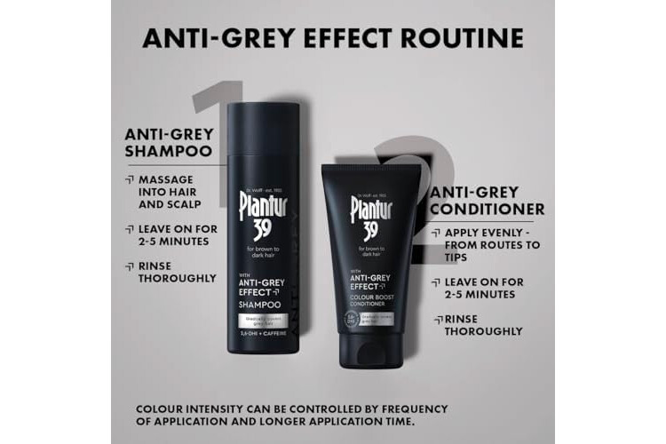 EASY AND EFFECTIVE SOLUTION FOR THOSE FIRST GREY HAIRS: Plantur 39 Anti-Grey Effect offers a gentle solution that gradually covers grey hair, delivering a natural and lasting darkening effect.