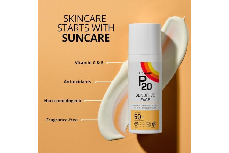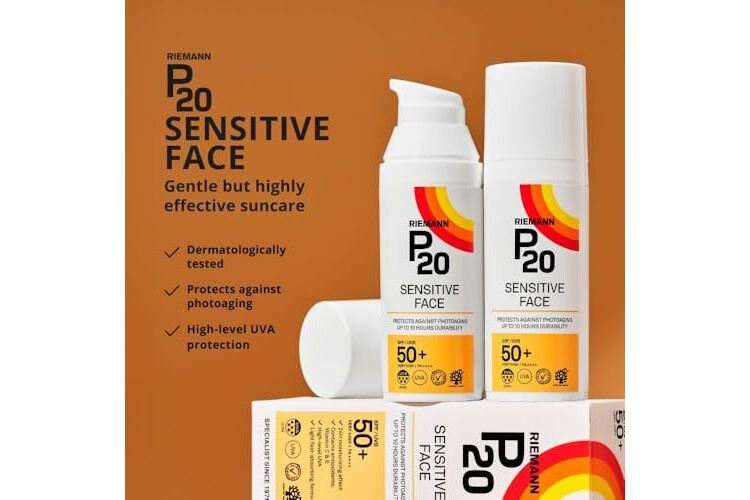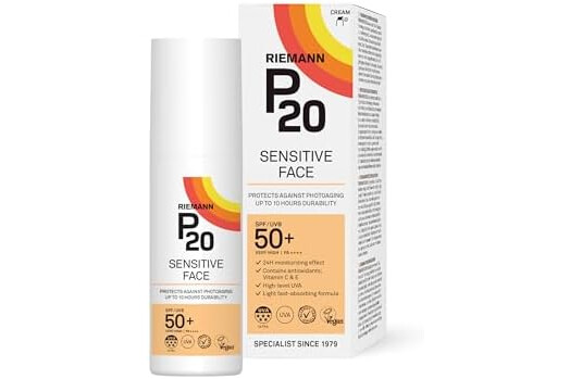 RIEMANN P20 Sensitive FACE SPF50+ UV Protection Cream, 50 Grams | Non Greasy Highly Effective Protects Face from UV Radiation |Sun Protection Factor 50+ | Wear under Make Up