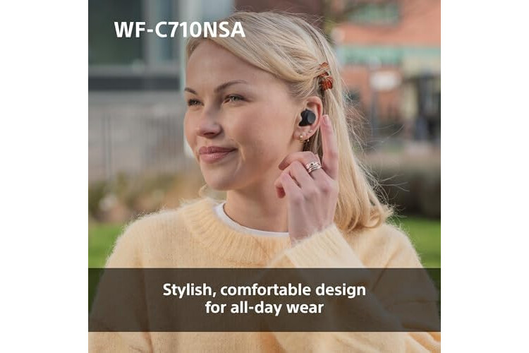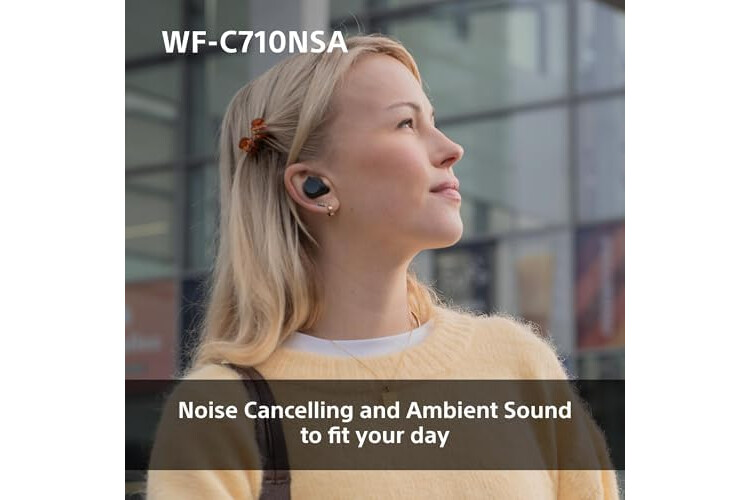 INTRODUCING THE SONY WF-C710NSA: With Noise Cancelling and Ambient Sound modes, you can focus on what matters; enjoy clear vocals, powerful bass, up to 40hr battery power, and more
