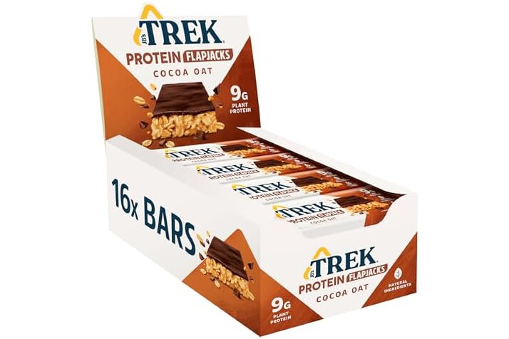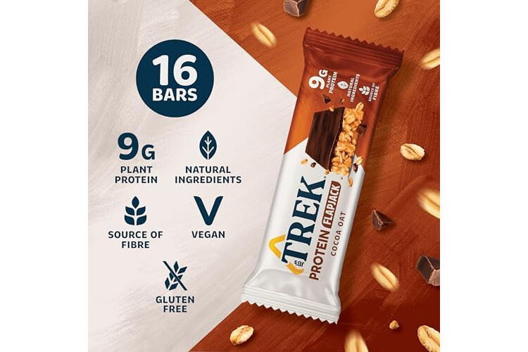 Trek High Protein Flapjack Cocoa Oat, 50 g - Gluten Free Bars – Healthy Snack Bars – Plant Based Protein - Vegan Bars (Pack of 16 Bars) | L0572375-P107199021-M107199013