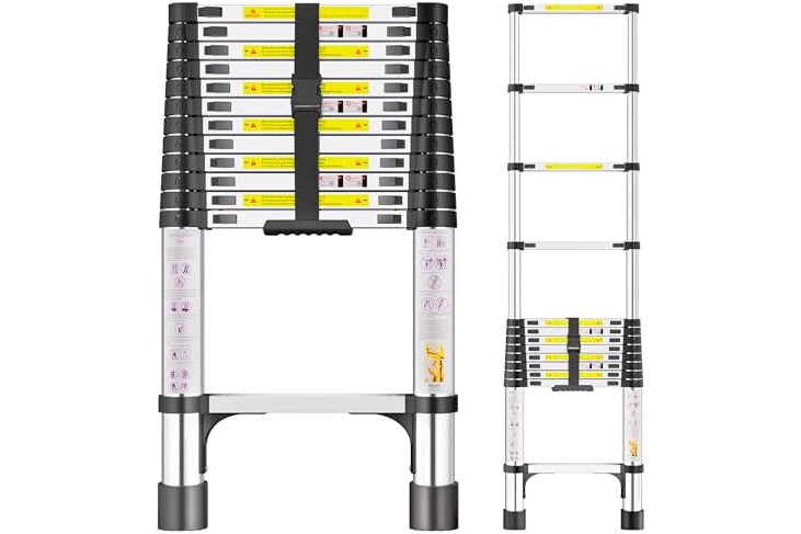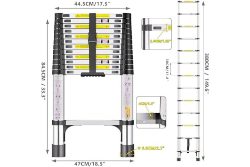 【Adjustable】Each section of our ladders extendable is equipped with a locking device, which adjusts the height in increments of 30 cm and is securely locked with a sliding latch. You can stop the folding ladder at the height you want, thus adapting to more usage scenarios.