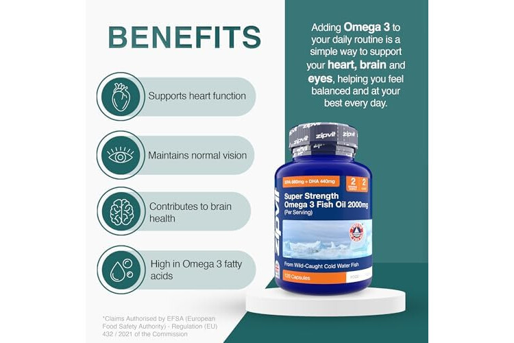 Omega 3 Fish Oil 2000mg, EPA 660mg DHA 440mg per Daily Serving. 120 Capsules (2 Months Supply). Supports Heart, Brain Function and Eye Health. 2 Capsules Per Serving