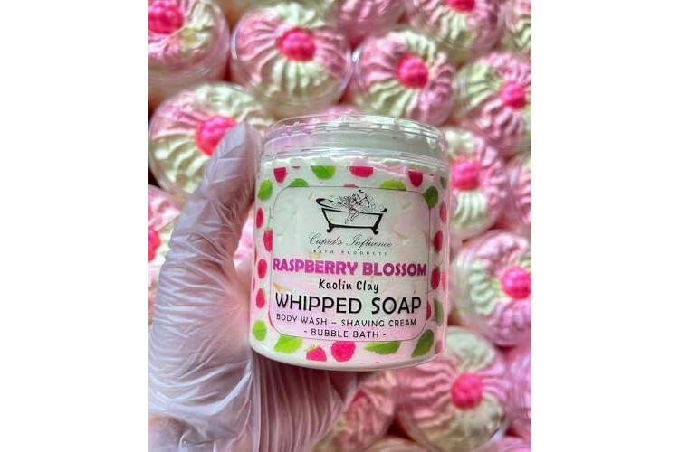 Experience pure luxury with our Raspberry Blossom multipurpose Whipped Soap. This semi-solid 3-in-1 cleanser serves as an all-over body wash, shaving foam, and solid bubble bath. It provides the perfect alternative to traditional shower gels, soaps, shampoos, and bubble bath soaks. Our whipped soap creates a rich foam and an abundance of bubbles, meaning a little goes a long way. It is infused with Apricot Kernel Oil and Kaolin Clay, leaving your skin purified and incredibly silky. Indulge your senses with the delightful Raspberry Blossom fragrance. It combines notes of Raspberries, crisp citrus notes with hints of plum and jelly sweets, all grounded with a delightful bubbly base. Our range of whipped soaps are proudly Vegan & Cruelty-Free. Net Weight: 250ml jar with a minimum of 180gr "e" of product.