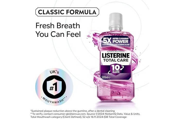 Listerine is the 1# mouthwash brand in the UK & Ireland*. This product is designed to kill up to 99% of bacteria that cause plaque and bad breath left after brushing for 12-hour germ protection and up to 24-hour fresh breath protection when used twice daily