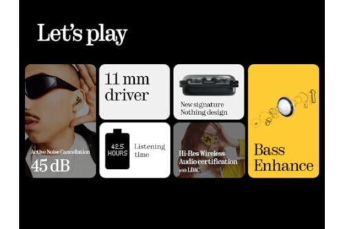Nothing Ear (a) wireless ear buds with Active Noise Cancelling, Bass Enhance Algorithm and up to 42.5 hours of listening time - Black