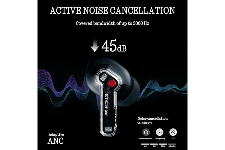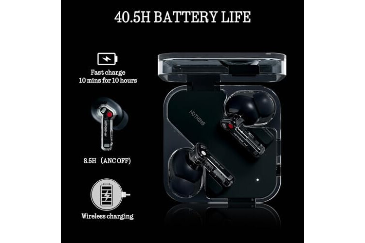 Nothing Ear wireless ear buds with Hi-Res Audio, Smart Active Noise Cancelling, Advanced equalizer and up to 40.5 hours of listening time - Black