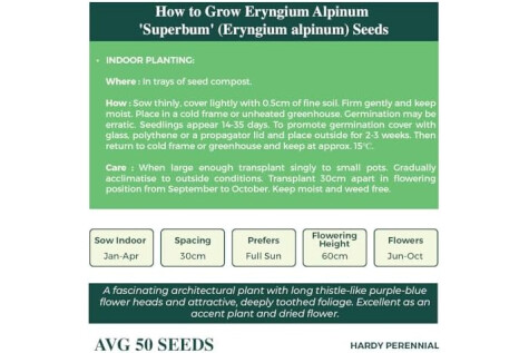 Eryngium Alpinum Superbum Seeds – Superb for Borders & Dried Flower Arrangements - RHS Plants for Pollinators – Hardy Perennial – for Your Beautiful Garden