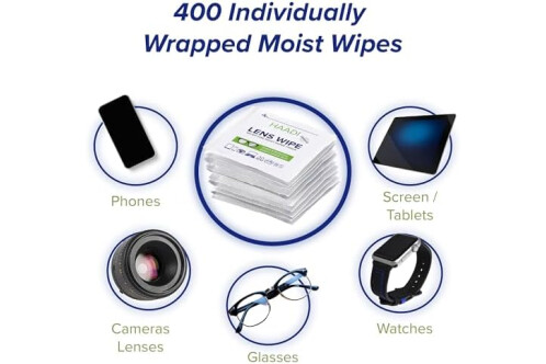 HAADI Lens Cleaner Wipes 400 Individually Wrapped Multipurpose Suitable for Spectacle Lenses, Cameras, Binoculars, Mirrors, Screens, Optical and Electronic Devices