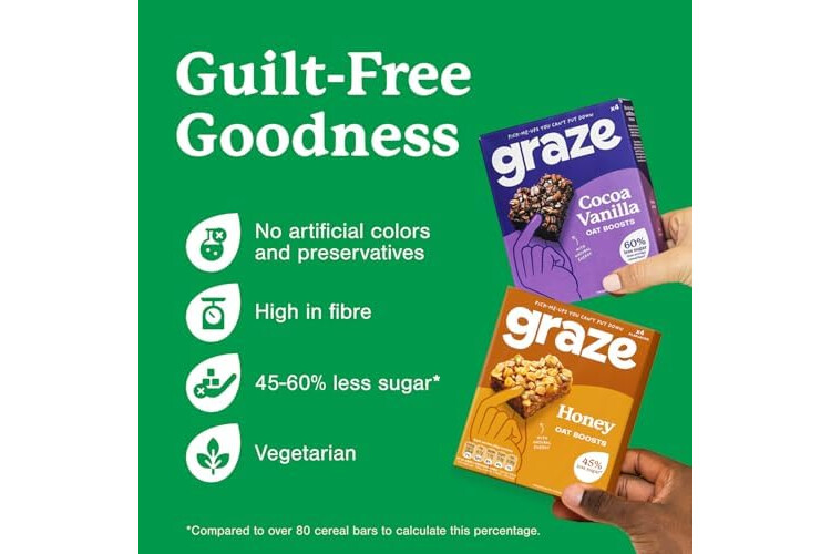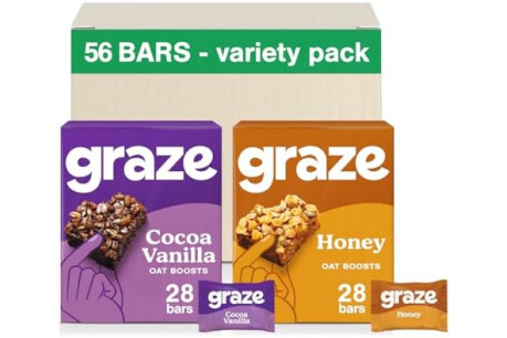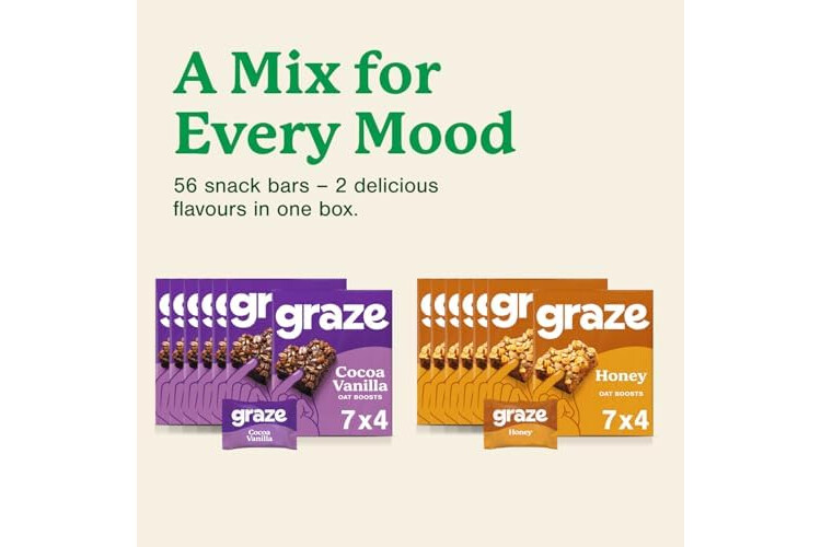 Graze Variety box of Healthy Snacks - Cocoa Vanilla Snack bars & Honey oat protein snack bars - Packaging may vary (56x30g)