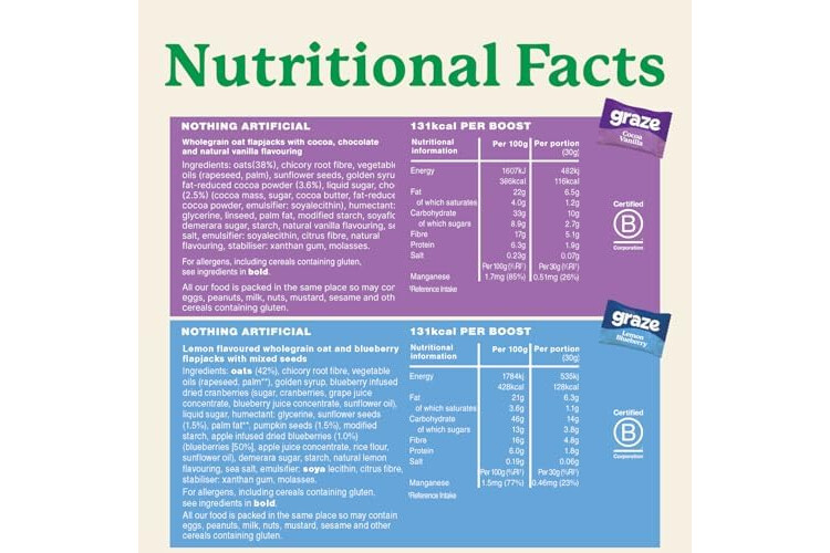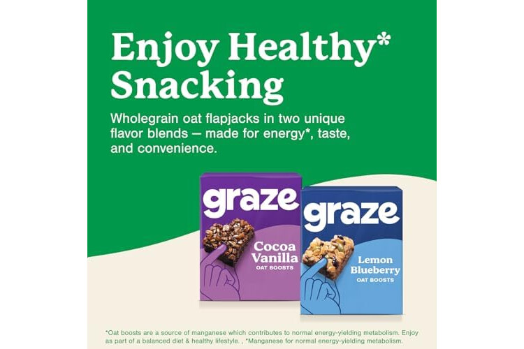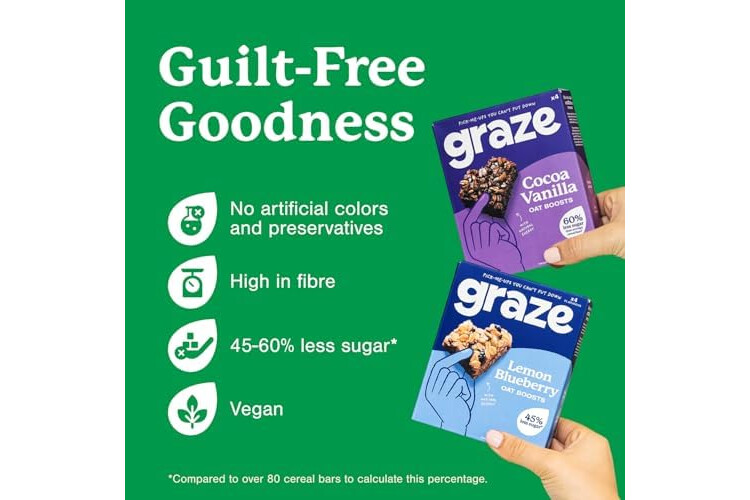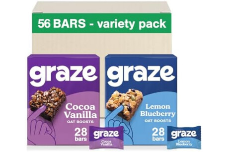 Graze Oat boosts, 28 x Cocoa Vanilla bars & 28 x Lemon Blueberry Superfood, Total 56 units of Vegetarian Bundle