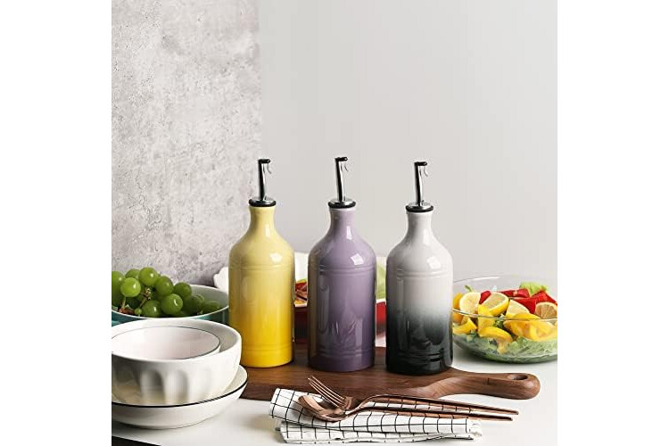 Stylishand Functional - The mouth design makes it easy to open and close the vinegar bottle, while ensuring a complete seal for extended shelf life. Add style and color to your kitchen.