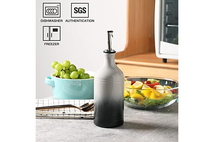 Sweejar Home Porcelain Olive Oil Dispenser Bottle, Opaque Oil Cruet Protects Oil To Reduce Oxidation, Suitable For Storage Of Oil, Vinegar, Soy Sauce And Other Liquids, 1 Piece, 460ml(Gradient Gray)
