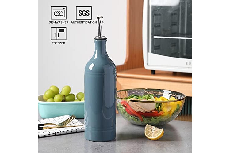 Sweejar Home Large Ceramic Olive Oil Dispenser Bottle, 680ml Opaque Cruet Protects Reduce Oxidation, Suitable For Storage Of Oil, Vinegar, Soy Sauce & Other Liquids for Kitchen Cooking (Fog blue)