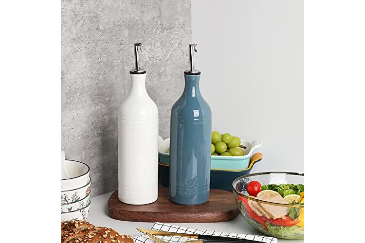 Leak Proof & Keep Liquid Fresh - The bottle is made of durable ceramic that creates a smooth glaze. And the opaque porcelain bottle protects the oil from light and makes it last longer.