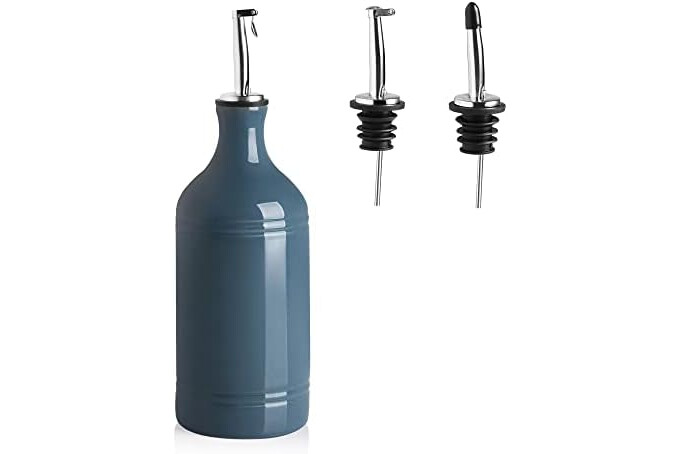 Sweejar Home Porcelain Olive Oil Dispenser Bottle, Opaque Oil Cruet Protects Oil To Reduce Oxidation, Suitable For Storage Of Oil, Vinegar, Soy Sauce And Other Liquids, 1 Piece, 460ml(Fog blue)