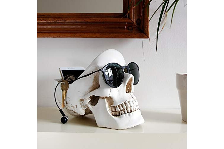 Keep precious gems safe with a Halloween skull jewelry organiser & jewellery box for women; Use as a necklace holder, ring holder or even a sunglasses stand for goth accessories that always disappear
