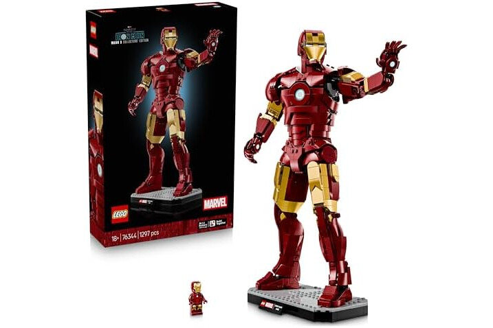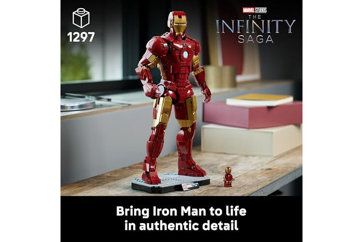 IRON MAN FIGURE – Fans can indulge their passion with LEGO Marvel Iron Man Mark 3 Collectors’ Edition building set for adults, a posable display figure standing over 38 cm (15 in.) tall