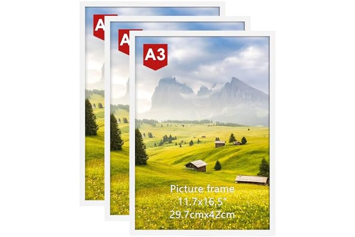 Hoikwo A3 Picture Frame Pack of 3, White Poster Frame for Wall Hanging, A3 Photo Frame for Home and Gallery Displays, Horizontal or Vertical (29.7x42cm)