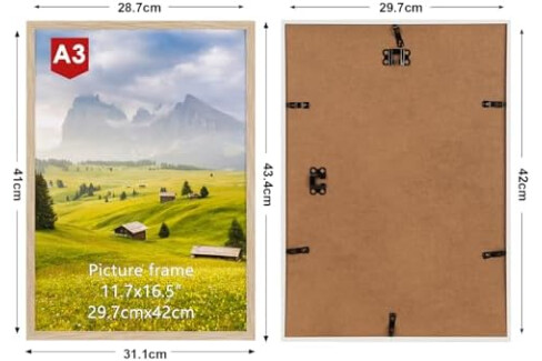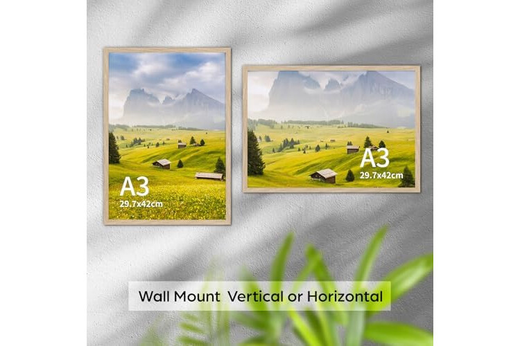 Wall Mount Display: This a3 oak frame can be hung horizontally or vertically on the wall, perfect for showcasing diplomas, family photos, or prints