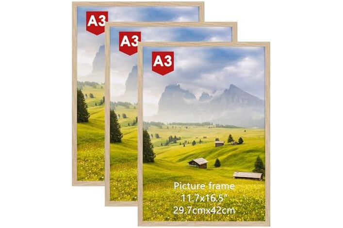Hoikwo A3 Picture Frame Pack of 3, Oak Poster Frame for Wall Hanging, A3 Photo Frame for Home and Gallery Displays, Horizontal or Vertical (29.7x42cm)