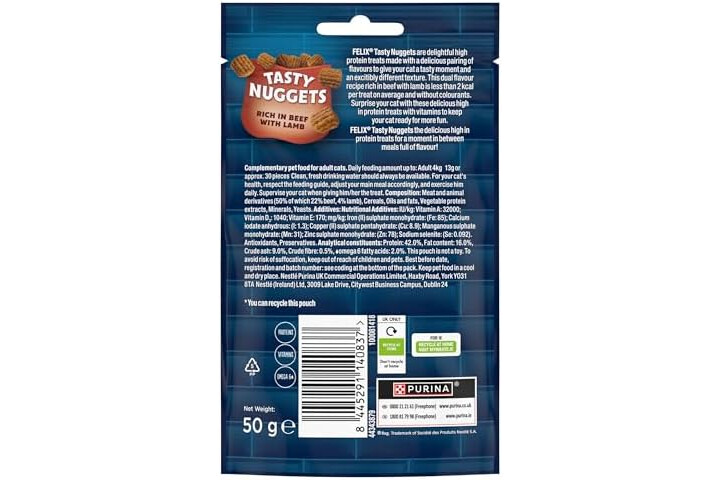 • FELIX Tasty Nuggets are delicious high in protein treats for a moment in between meals full of flavour