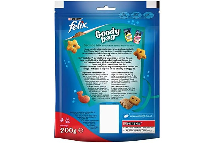 FELIX Goody Bag Seaside Mix Salmon, Pollock and Trout Cat Treats 200g (Pack of 5)