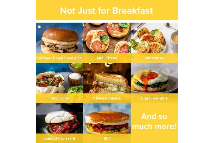 QUICK AND EASY TO USE: This machine is incredibly easy to use. Create your perfect English Breakfast Muffin by toasting your bread, cooking the egg, heating the meat and melting the cheese all at once! The perfectly circular cooking rings are designed t...