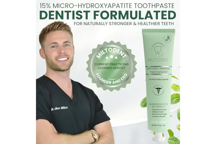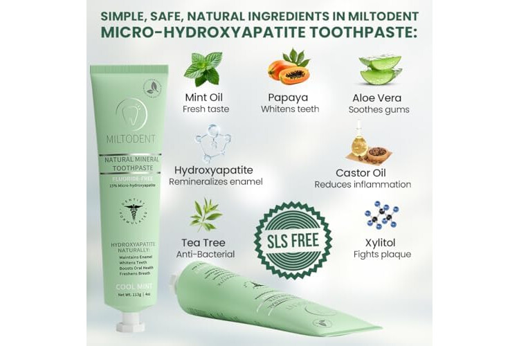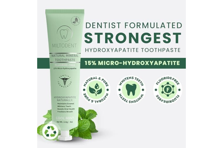 MILTODENT Premium Hydroxyapatite Toothpaste – 15% Micro-Hydroxyapatite | Fluoride-Free, Best Taste, Foam-Free, Natural Mineralizing | Safe Alternative to Nano-Hydroxyapatite | SLS-Free & Natural 4oz