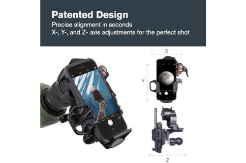 EASY AS X-Y-Z: Unlike other adapters, NexYZ features three directional knobs (X, Y, and Z axis) with tension adjustments that perfectly align your phone’s camera with the eyepiece in seconds, so you are ready to snap the perfect image