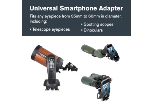 Celestron 81055 NexYZ 3-Axis Universal Smartphone Adapter, Patented Design - Works with Telescopes, Spotting Scopes, Binoculars, Monoculars and Microscopes, Black