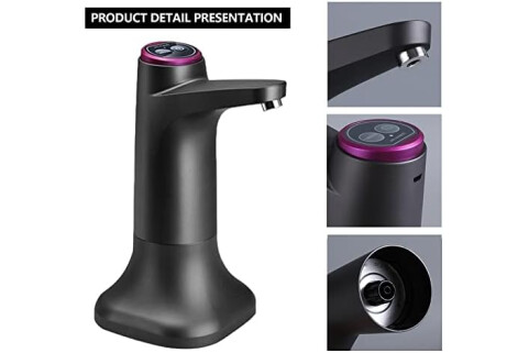 Eachbid Water Dispenser, Double Purpose, USB Rechargeable, for Universal 2-5 Gallon Bottles, Black