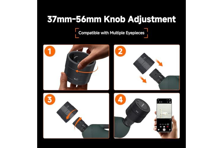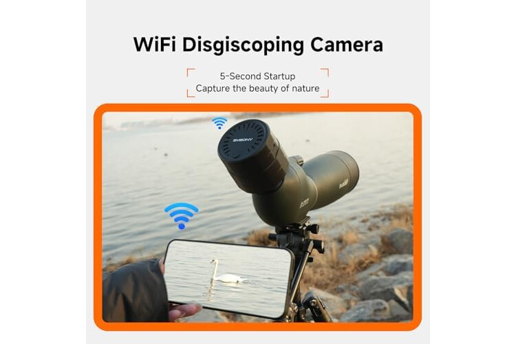 Stable connection wide compatibility: the Svbony SC002 Wi-Fi camera supports eyepieces with an outer diameter ranging from 37mm to 56mm; ensuring a strong grip and stable connection to capture every detail in stunning clarity; it's the ideal companion for your outdoor adventures Simple to use, Effortless Setup: Svbony SC002 Wi-Fi camera is incredibly easy to use just press and hold for 5 seconds to power on; open the app; and connect to Wi-Fi; start capturing birdwatching moments instantly; with no complicated setup required