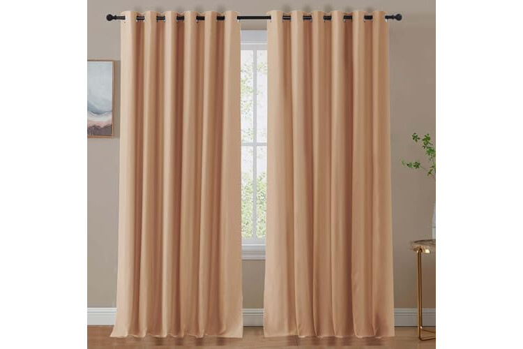 Aspire Homeware Blackout Curtains for Bedroom - Beige Eyelet Curtains & Drapes Thermal Insulated Window Treatments 90x72 inch Ring Top Living Room Curtain with Tiebacks, 2 Panels