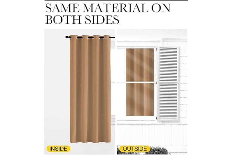 BLACKOUT MATERIAL: 100 percent polyester blackout fabric, 2 panels made of innovative triple-weave fabric; no stiff liner; elegantly frames windows with a sophisticated drape.