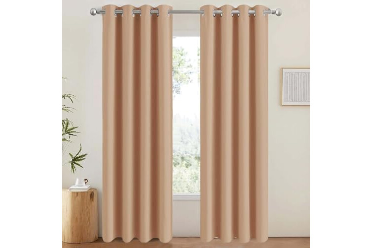 Aspire Homeware Blackout Curtains for Living Room 46x72 Inch Beige Eyelet Curtains for bedroom Super Soft Privacy Curtain and Drapes 2 Panels with Tiebacks