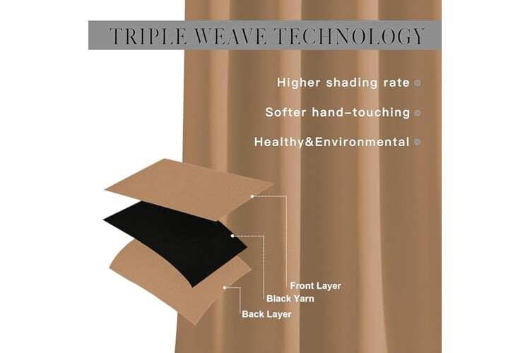 BLACKOUT MATERIAL: 100 percent polyester blackout fabric, 2 panels made of innovative triple-weave fabric; no stiff liner; elegantly frames windows with a sophisticated drape.