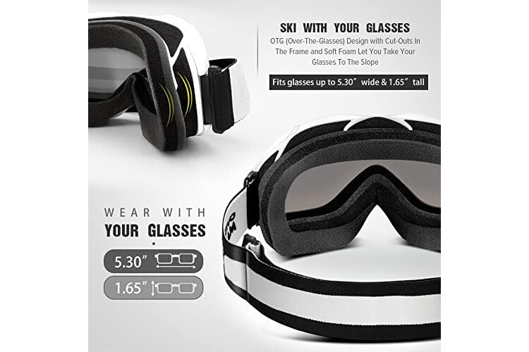 • OTG (Over-The-Glasses) Design: Ski goggles that fits over glasses. Suitable for both adults and youth