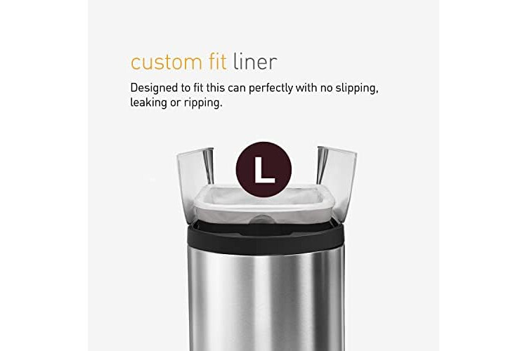• custom fit liners: Our liners are tailored to fit our bins perfectly so they don't slip and the bag stays completely hidden when the lid is closed.