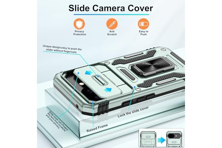 Unique Design:Pixel 10a case's sliding camera cover protects camera from shattering, the raised design of camera aperture edges provide effective protection for the screen and camera.The design of back with unique texture provides great grip feeling, anti-scratch,anti-slip,shockproof,google pixel 10a case gives your phone stronger protection