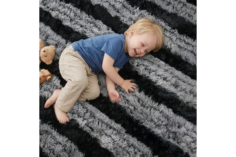 【SUPER SOFT FEELING】 – The grey rug living room design of this Large Rugs for Living Room offers a super soft feeling thanks to its fiber material, and the velvet surface fits perfectly as a dark grey rug option that can absorb dust while the middle sponge reduces pressure. This black and grey rug style is ideal as a rug for bedroom where you can relax freely or as bedroom rugs that make family playtime more comfortable, especially as a grey and black rug choice for a large grey rug.