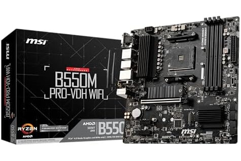 MSI B550M PRO-VDH WIFI Motherboard M-ATX - Supports AMD Ryzen 5000 Series Processors, AM4, DDR4 Boost (4400MHz/OC), 1 x PCIe 4.0 x16, 3 x PCIe 3.0 x16, 1 x M.2 Gen4, 1 x M.2 Gen3, Gigabit LAN, Wi-Fi 6