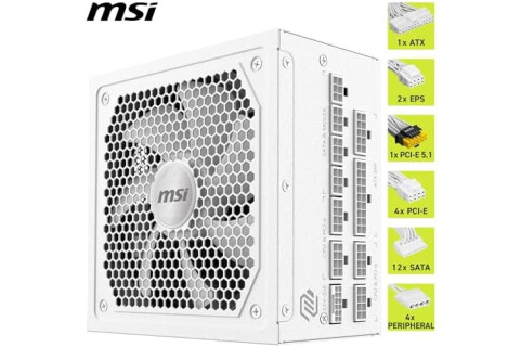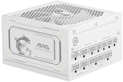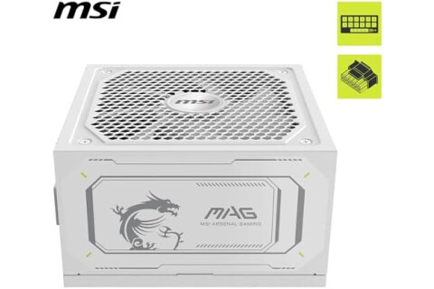 MSI MAG A1000GL PCIE5 WHITE Power Supply Unit, 1000W, 80 PLUS Gold, ATX 3.1, PCIe 5.1 GPU Support, ATX PSU, White Flat Cable
