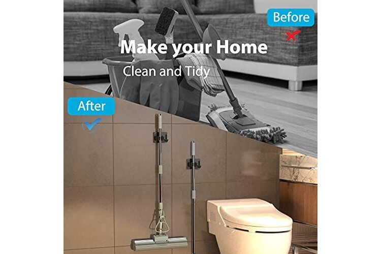 【Easy to Install】 Homeasy mop wall holder is easy and convenient to install, just stick on...