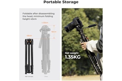 【Practical and portable】4-section bracket design, maximum height of 77''/196 cm, the head can be folded and stored after disassembling, the length of the storage is controlled at 16.93''/43 cm, can be easily stored in a backpack or camera bag.