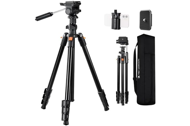 K&F CONCEPT 77"/196cm Video Tripod, Lightweight Travel Tripod with 3-Way Swivel Pan Tilt Head, Phone Holder for Phone/DSLR Camera, Compatible with Canon/Sony/Nikon Camera, Load 4kg/8.8lbs