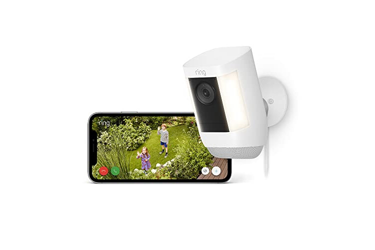 Ring Spotlight Cam Pro Plug-In| Outdoor Security Camera 2K Video with Ring Vision, 3D Motion Detection, Bird's-Eye View, LED Spotlights, alternative to CCTV | 30-day free trial of Ring Subscription